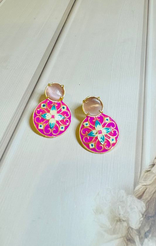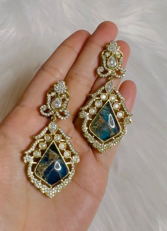 Moissanite and Marble Doublet Earrings
